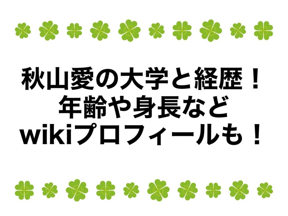 なんて疑問をお持ちのアナタのために、秋山愛さんの大学と経歴、年齢や身長などwikiプロフィールも調査、まとめました。