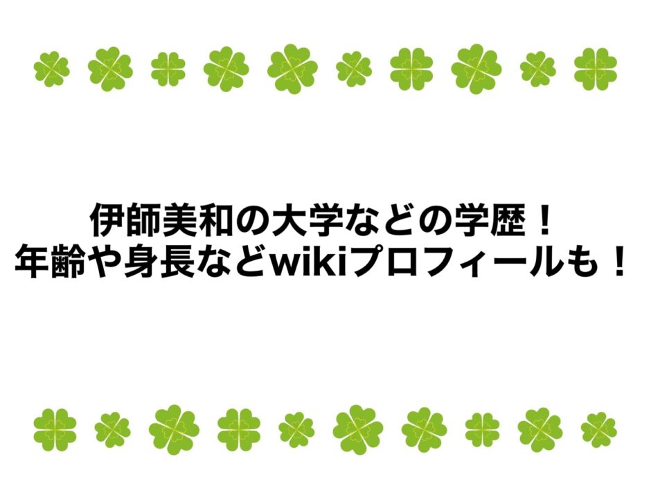 なんて疑問をお持ちのアナタのために、伊師美和さんの大学などの学歴、年齢や身長などwikiプロフィールも調査、まとめました!