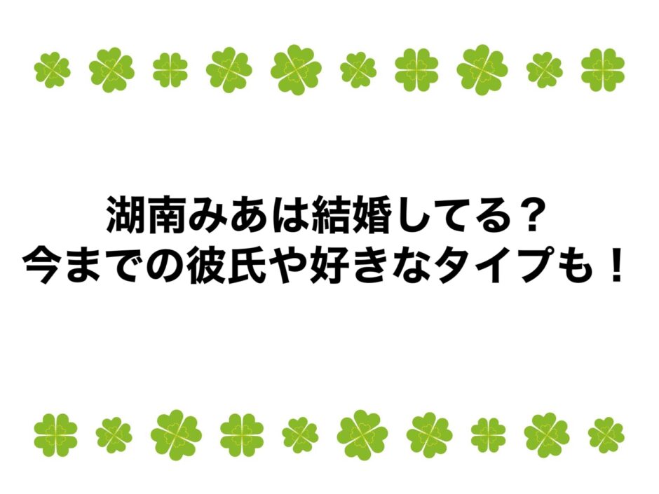 そんなアナタのために、湖南みあさんの結婚事情、今までの彼氏や好きなタイプも調査、まとめました。