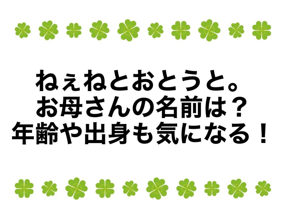 そんなアナタのために、ねぇねとおとうと。お母さんの名前は公開されているのか、年齢や出身も調査、まとめました。