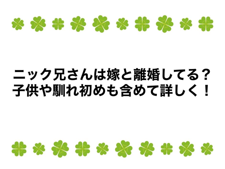 なんて疑問をお持ちのアナタのために、ニック兄さんは嫁と離婚してるのか、子供や馴れ初めも含めて詳しく調査、まとめました。
