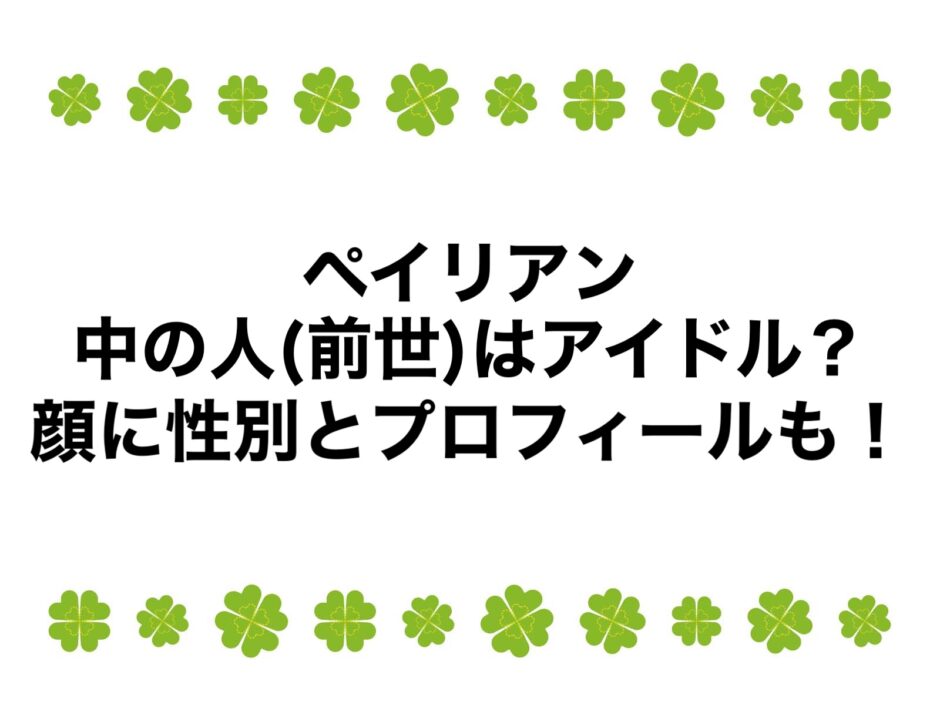 なんて疑問をお持ちのアナタのために、ぺイリアンさんの中の人と前世は判明しているのか、顔に性別に年齢などプロフィールも調査、まとめました。