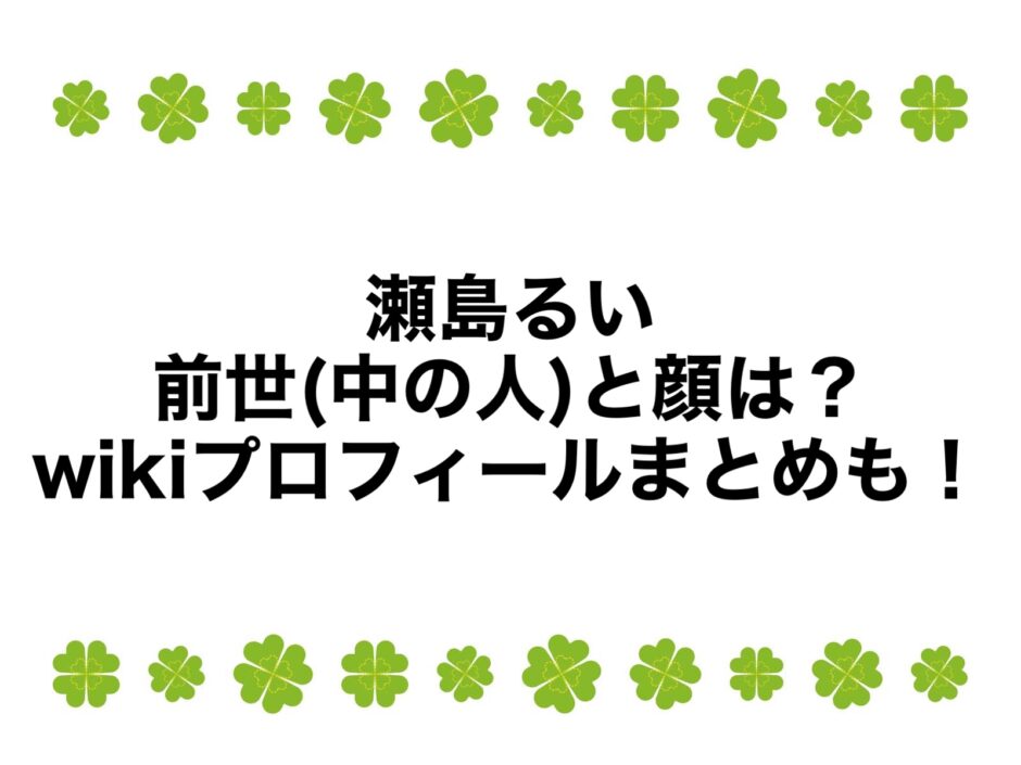 そんなアナタのために、瀬島るいさんの前世(中の人)と顔、wikiプロフィールまとめも調査、まとめました。
