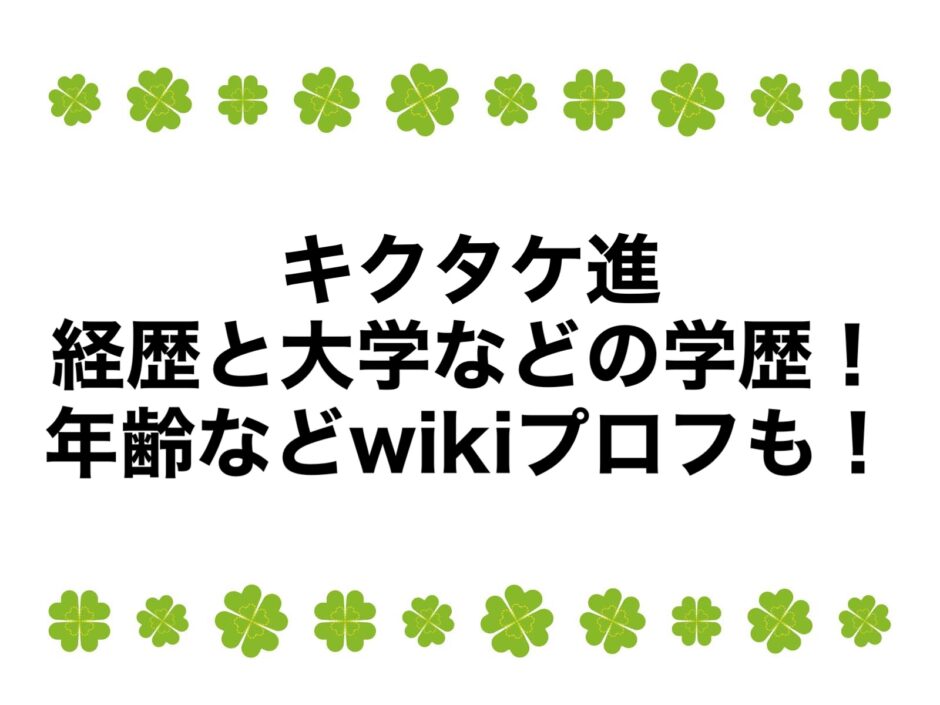 なんて疑問をお持ちのアナタのために、キクタケ進さんの経歴と大学などの学歴、年齢などwikiプロフも調査、まとめました。