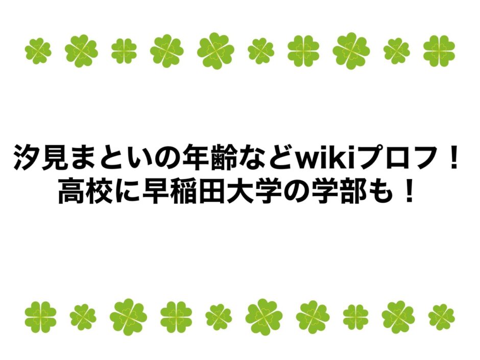 なんて疑問をお持ちのアナタのために、汐見まといさんの年齢などwikiプロフ、高校に早稲田大学の学部も調査、まとめました。